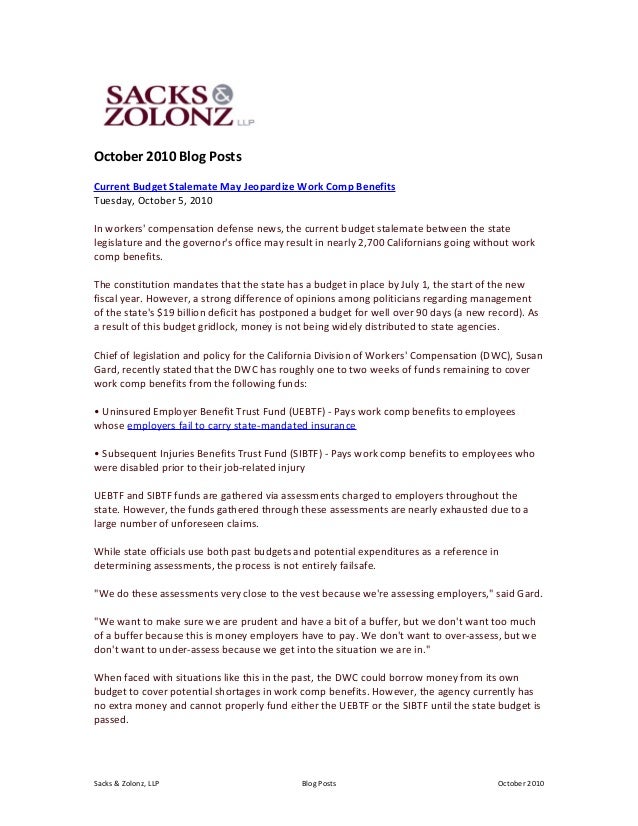 Sacks And Zolonz Blog Entries 10 2010