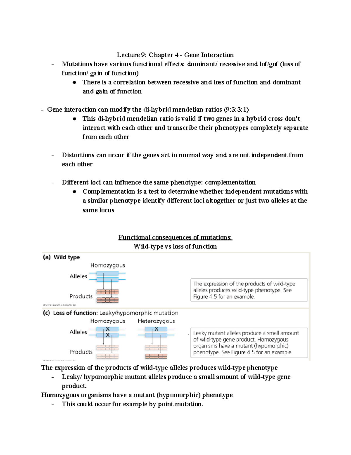Genetics 2 Exam Notes Lecture 9 Chapter 4 Gene Interaction Mutations Have Various Functional Studocu